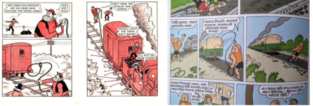 পরবর্তীকালে যখন Dandy Comics-এর Desperate Dan, Corky the Cat ইত্যাদি একাধিক চরিত্রগুলোর আদলে অনেক বছর পরে বাংলায় প্রকাশিত হয় বাহাদুর বেড়াল, বাঁটুল দি গ্রেট ও অন্যান্য কমিকস,