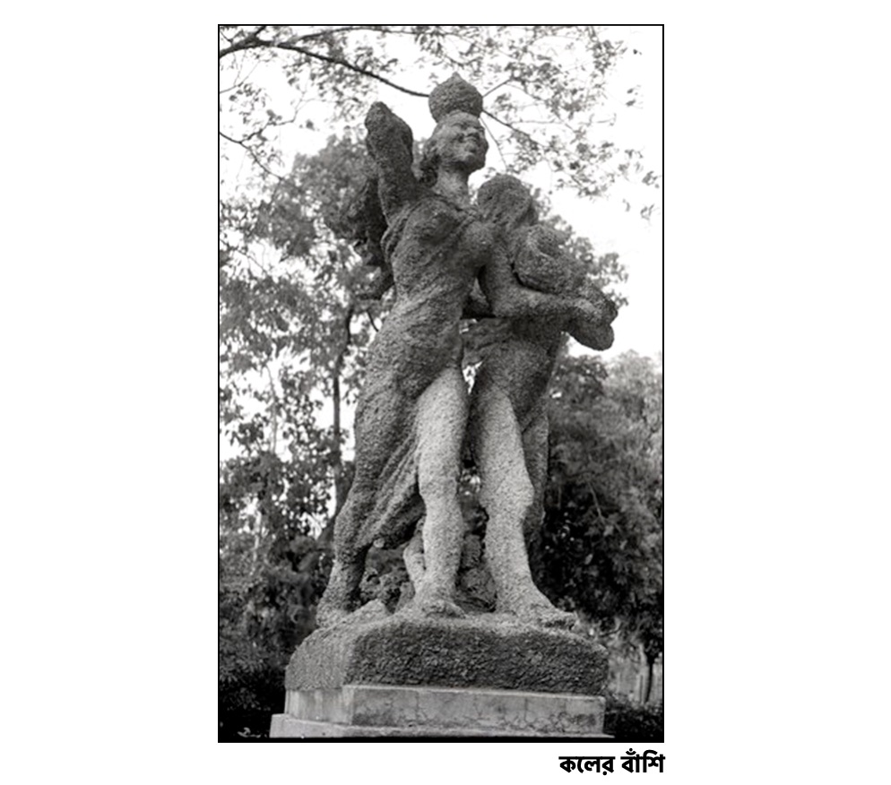 এই কবিতা লেখার কয়েক বছর পরেই রামকিঙ্কর তৈরি করেন তাঁর আর একটি বিখ্যাত পরিবেশ ভাস্কর্য যার নাম ‘সাঁওতাল পরিবার’। কেউ কেউ এই মূর্তিটিকে ‘মিল কল’ নামেও অভিহিত করে থাকেন। যে ধানের কলের কথা রবীন্দ্রনাথ তাঁর কবিতায় লিখেছেন সেই কলের বাঁশি শুনে স্নান করে কাপড় শুকোতে শুকোতে দৌড়ে চলেছে দুটি সাঁওতাল যুবতি, আর তাদের পিছনে ছুটে চলেছে একটি বালক। এই সাঁওতাল যুবতিরা জল জঙ্গলের অধিকার হারানো সেই জাতির প্রতিনিধি যারা আজ নিজের হাজার বছরের ভূমি ছেড়ে অন্য জায়গায় এসে ধান কলের মজুরের চাকরি নিতে বাধ্য হয়েছে। এই সেই ধান কল, রবীন্দ্রনাথের ভাষায় যা বাতাসের রন্ধ্রে রন্ধ্রে বিষ মিশিয়ে দিচ্ছে। এ যেন এক আশ্চর্য আয়রনি। প্রাকৃতিক উপাদানে, বীরভূমের বালি কাঁকরের প্রয়োগে নির্মিত এক পরিবেশ ভাস্কর্য, যা কিনা আক্ষরিক অর্থেই একেবারে ‘মাটি থেকে উঠে আসা’ একটি শিল্পকর্ম, তুলে ধরেছে এমন এক বাস্তব সত্যকে, যেখানে একদা জল, জঙ্গল ও প্রকৃতির রক্ষকের উত্তরপুরুষেরা সর্বস্ব হারিয়ে জীবিকার সন্ধানে এমন কাজে যুক্ত হয়ে রয়েছে যা একাধারে প্রকৃতি ও তাদের জীবন দুটিকেই তিলে তিলে শেষ করে দিচ্ছে। রামকিঙ্কর যখন এই ভাস্কর্য তৈরি করেন তখন গ্লোবাল ওয়ার্মিং, গ্রিনহাউস গ্যাস, ওজোন লেয়ার ইত্যাদি শব্দবন্ধের সঙ্গে সাধারন মানুষের তেমন কোনও পরিচয় ছিল না। ফলে সচেতন ভাবে শিল্পীদের পক্ষেও এই বিষয়ে কোনও নির্দিষ্ট শিল্পবস্তু নির্মাণ করবার প্রশ্ন ওঠেনি। রবীন্দ্রনাথকে আমি এই আলোচনা থেকে বাদ রাখছি, কারণ তিনি নিজের সময়ের থেকে বহু বহু এগিয়ে ছিলেন। কিন্তু রামকিঙ্করের মতো যে শিল্পীরা সংবেদনশীলতা এবং সততার সঙ্গে নিজের সময়কে কাজের মধ্যে ধরে রাখবার প্রয়াস চালিয়েছেন, তাঁদের কাজে আপনাথেকেই সময়ের এমন কিছু লক্ষণ ধরা পড়ে গেছে যা আমাদের বুঝতে সাহায্য করে কীভাবে ধীরে ধীরে আমরা আজকের এই পরিবেশ বিপন্নতার সম্মুখীন হলাম।