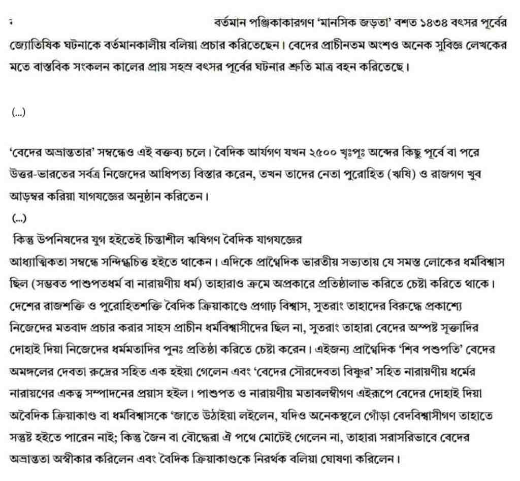 সমকালেও দেখি বৈদিক তথা সনাতন (“most oldest”?!?) ধর্মের চূড়ান্ত বাড়বাড়ন্ত। চন্দ্রযান পাঠাতে তাই ঘটা করে নারকোল ফাটানো হচ্ছে; আই-আই-টি মাদ্রাজের ডিরেক্টর গোমূত্রকে “anti-bacterial” এবং “anti-fungal” হিসেবে প্রচার করছেন; কোথাকার এক জজসাহেব বলছেন ময়ূরের সংগম হয় চোখের ইশারায়; আমাদের বর্তমান আইনমন্ত্রী অর্জুন মেঘোয়াল করোনার সময় বলেন যে ভাবিজি পাঁপড় খেলে করোনা সেরে যায়; আমাদের বর্তমান প্রধানমন্ত্রী বলছেন প্রাচীন ভারতে গণেশের প্লাস্টিক সার্জারির কথা, সেই প্রধানমন্ত্রীই আবার শীর্ষ আদালতের প্রধান বিচারপতির বাড়ি গিয়ে গণপতি বাপ্পার পুজো করে ছবি এবং ভিডিও প্রচার করছেন; সেই প্রধান বিচারপতি তিন-চারমাস ধরে ধ্যান করে প্রভু শ্রীরামের দ্বারা প্রত্যাদিষ্ট হয়ে রাম মন্দিরের মতন একটা বিষয়ে রায় দিচ্ছেন; The Royal Society of Tropical Medicine & Hygiene থেকে প্রকাশিত যৌথভাবে “বৈজ্ঞানিক”-দের একটি লেখায় বলা হচ্ছে “Einsteinian Pain Waves”-এর কথা। প্রচুর গোহত্যার জন্য সেই গোরুদের অন্তিম কান্নায় পৃথ্বী এতটা ব্যথিত হচ্ছে, যে তা কাঁদিয়ে-কাঁপিয়ে দিচ্ছে। সম্প্রতি মহাকুম্ভের ব্যাপক গণ-হিস্টিরিয়া ভুলিয়ে দিচ্ছে গঙ্গার শোচনীয় অবস্থা তথা দূষিত জলের কথা। বরং দেখা যাচ্ছে যে রাম মন্দিরের প্রয়াত পূজারিকে সরযূর জলে ভাসিয়ে দেওয়া হচ্ছে।৫