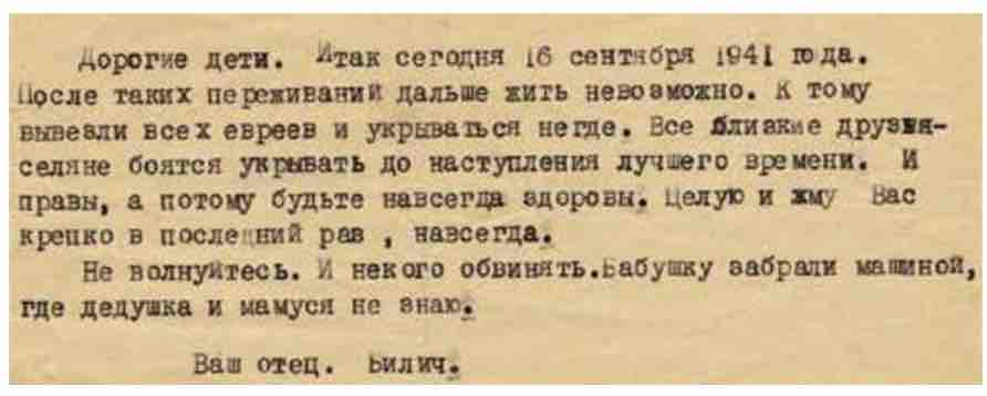 মন্ট্রিয়ল হলোকস্ট মিউজিয়ামের তরফে ২০১০ সালে প্রকাশিত হয় গ্যাস চেম্বারে মারা যাবার আগে ১৭টি চিঠির একটি সংকলন– স্কুলের বাচ্চাদের নৃশংসতা এবং অবান্তর হত্যার বিরুদ্ধে ‘sensitize’ করার জন্য। এ সংকলনের নাম– ‘17 LETTERS for the first time and forever’. এ সংকলনের ৪ নম্বর চিঠিটি ছিল এরকম (পৃঃ ২১) –